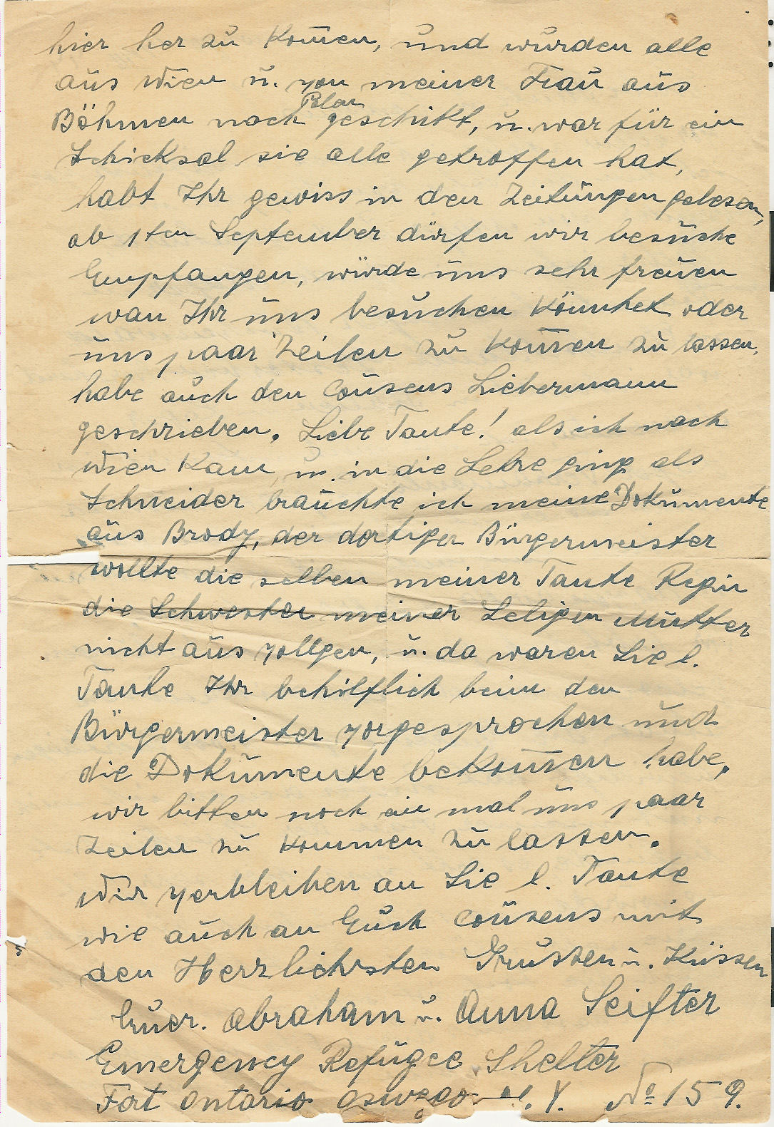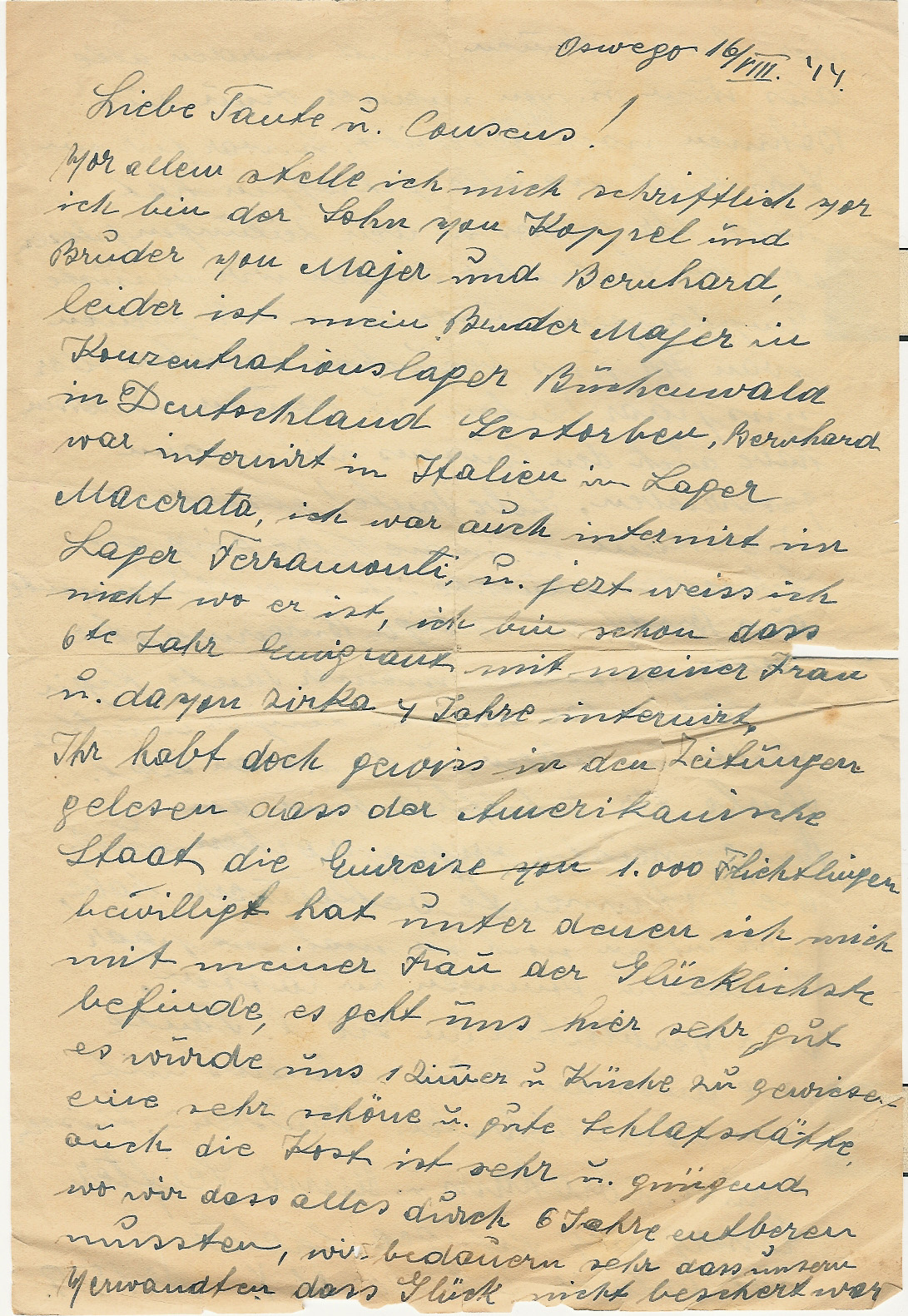 Oswego, New York, letters during the war from those who had somehow