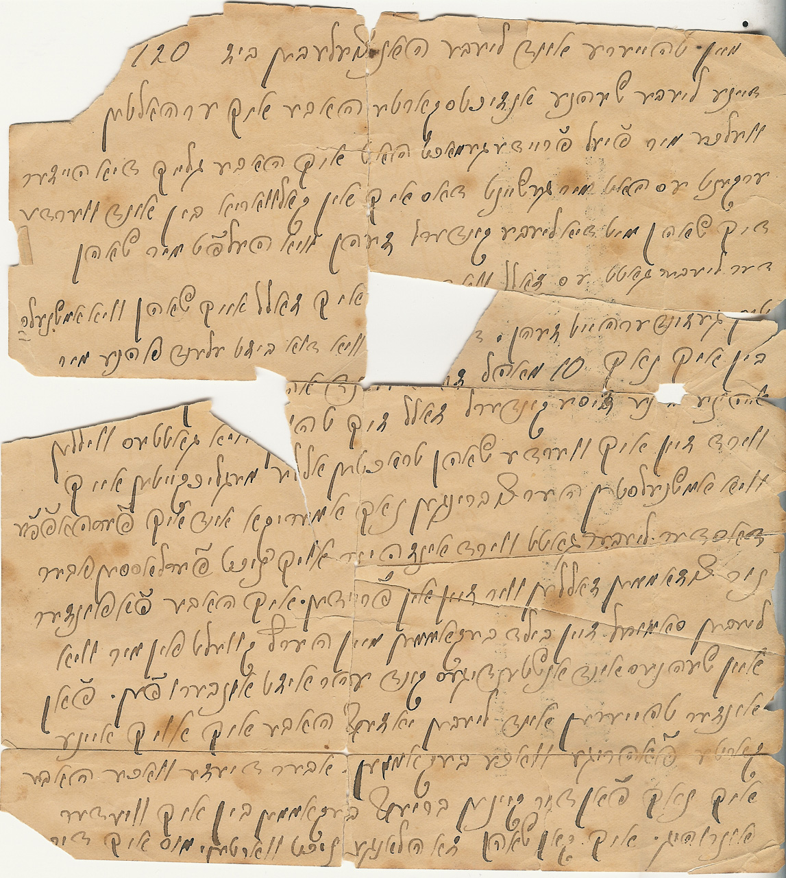 This fragment of a Yiddish letter is in pieces. It was written by Hayyim to Hannah, during the time he was in New Orleans waiting to bring over the family from Kalvarya. From the references to how long he had been gone, the letter was probably written in 1904. Layeh Laks (Palo Alto, California) and I (mostly Layeh) did this very literal translation around 1991.