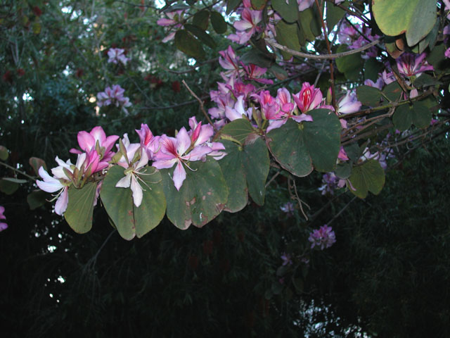 I think this is Bauhinia purpurea בוהיניה ארגמנית. The leaves and flowers match the pictures on the web.